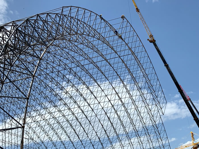 (2)网架加工前应对现场尺寸进行复测,确认无误后方可进行加工、安装;网架制作、运输、安装应遵守《空间网格结构技术规程》JGJ7-2010、《钢网架舞钢螺栓球节点》JG/T 10-2009、《钢网架舞钢螺栓球节点用高强度螺栓》 GB/T 16939-2016、《舞钢钢结构舞钢工程舞钢施工规范》 GB50755-2012、《舞钢钢结构舞钢工程施工质量验收标准》 GB50205-2020。